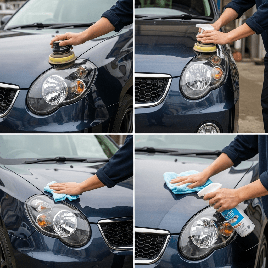 ルキノはヘッドライトの黄ばみとボディの鉄粉が第一印象を損ねます。研磨+鉄粉除去クリーナー+ワックスで輝きを取り戻せば「程度良好」と判断され+4~7万円の効果。