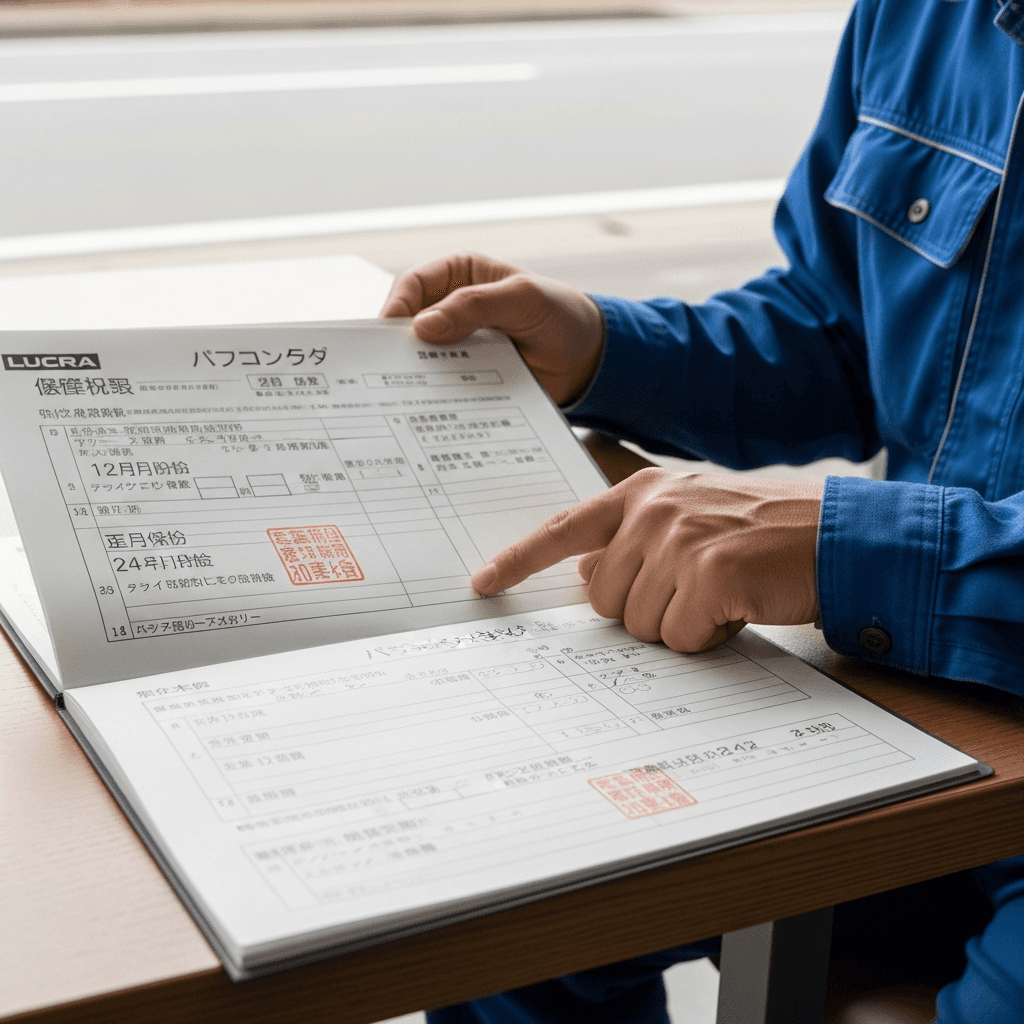 ルクラの整備記録簿に定期点検(12ヶ月・24ヶ月)の履歴が全て記載されていれば「管理の行き届いた車」と高評価。特にエンジンオイル交換履歴は重要で+6~9万円の効果。