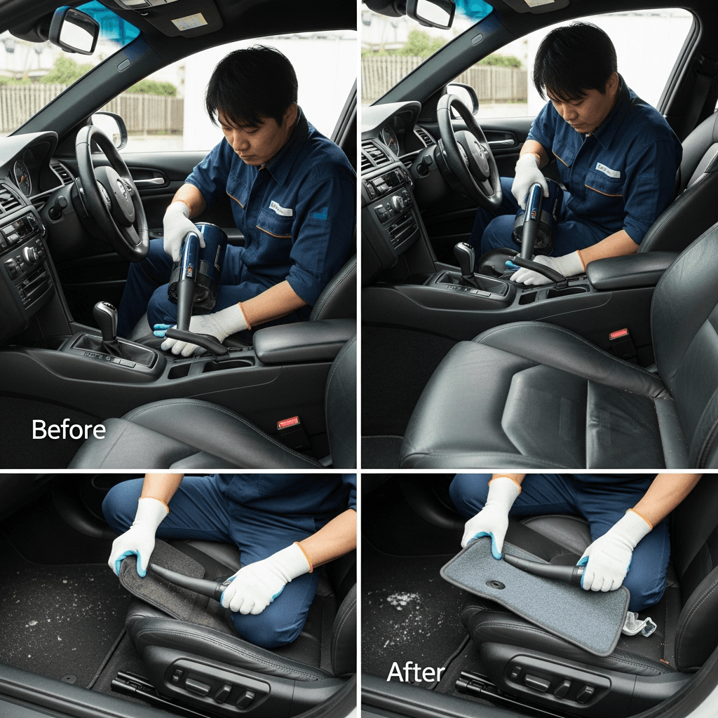 M3は第一印象が査定の8割を決めます。シート隙間のゴミ除去、マット洗浄、樹脂パーツ艶出しで新車級の清潔感に。特に臭いゼロなら「禁煙車」扱いで+5~8万円UP。