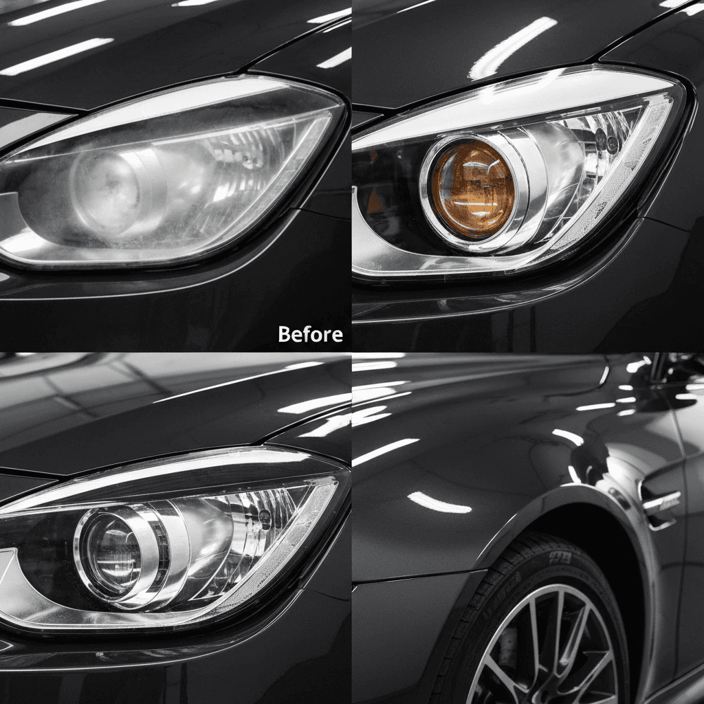 ヘッドライト黄ばみ除去+ボディ鉄粉除去で輝き復活!