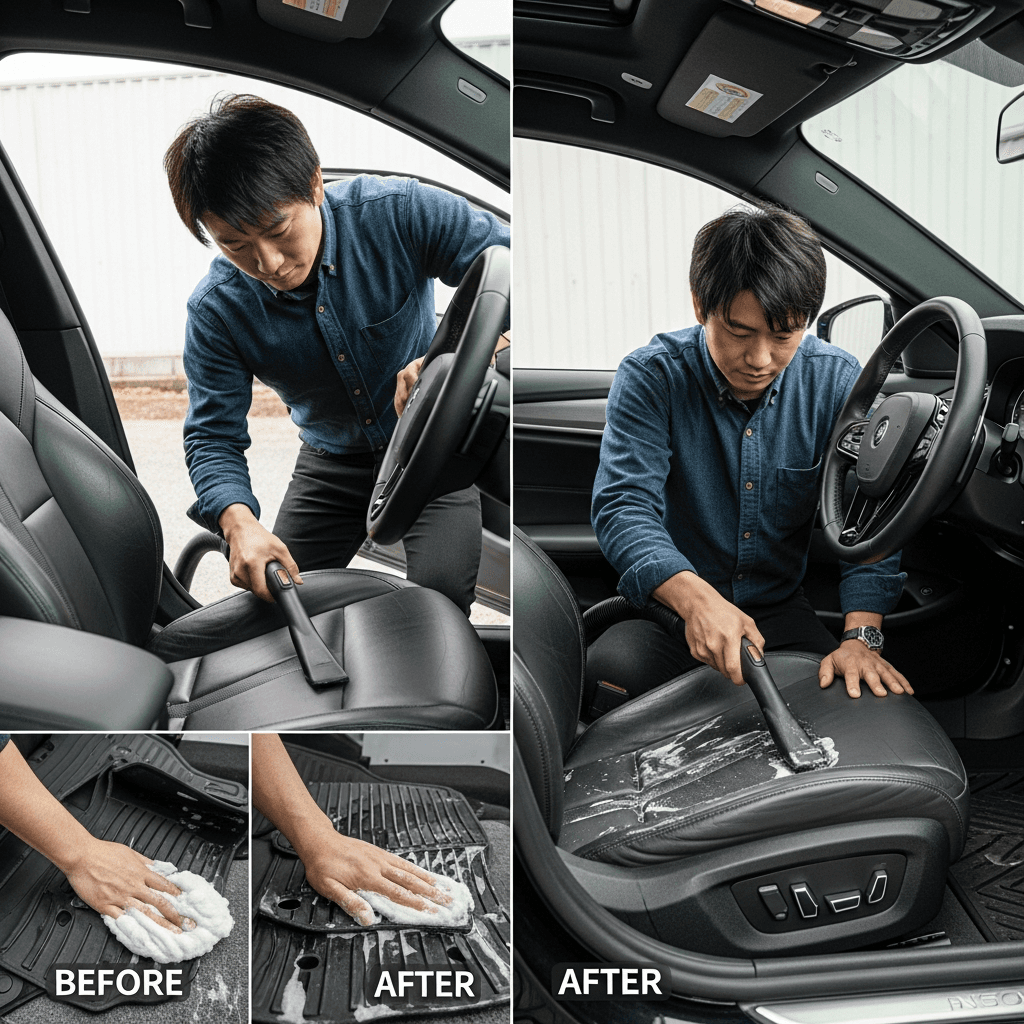 M5コンペティションは第一印象が査定の8割を決めます。シート隙間のゴミ除去、マット洗浄、樹脂パーツ艶出しで新車級の清潔感に。特に臭いゼロなら「禁煙車」扱いで+5~8万円UP。