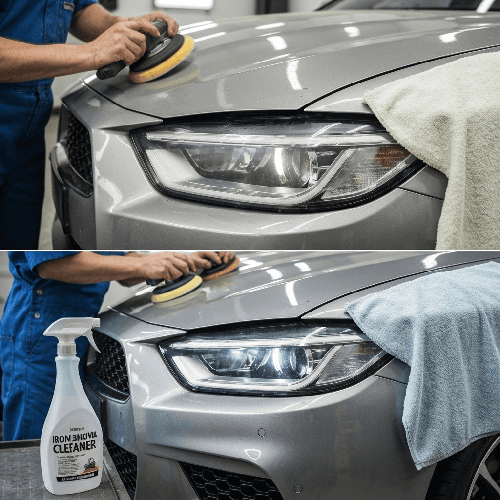 ヘッドライト黄ばみ除去+ボディ鉄粉除去で輝き復活!