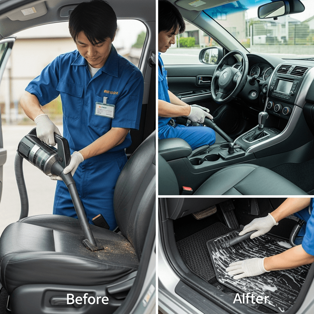 M55は第一印象が査定の8割を決めます。シート隙間のゴミ除去、マット洗浄、樹脂パーツ艶出しで新車級の清潔感に。特に臭いゼロなら「禁煙車」扱いで+5~8万円UP。