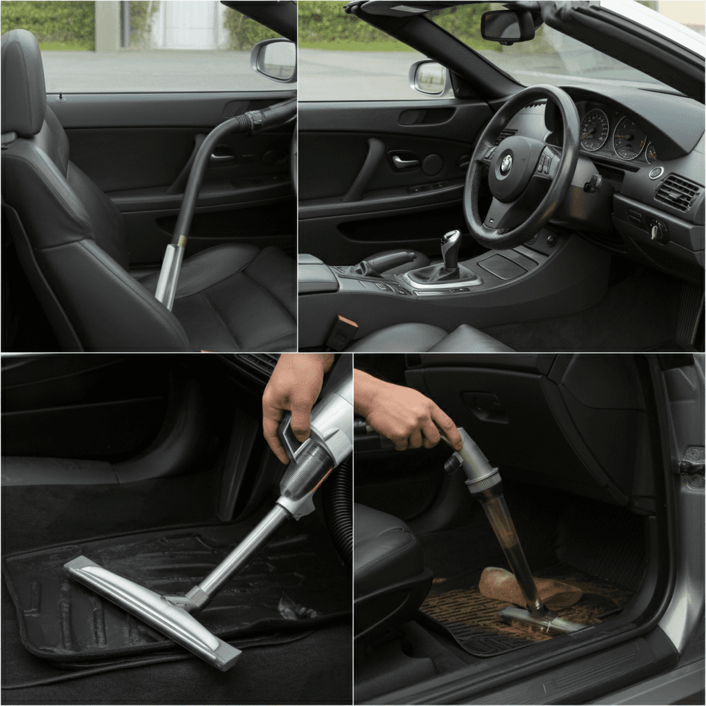 M6 カブリオレは第一印象が査定の8割を決めます。シート隙間のゴミ除去、マット洗浄、樹脂パーツ艶出しで新車級の清潔感に。特に臭いゼロなら「禁煙車」扱いで+5~8万円UP。