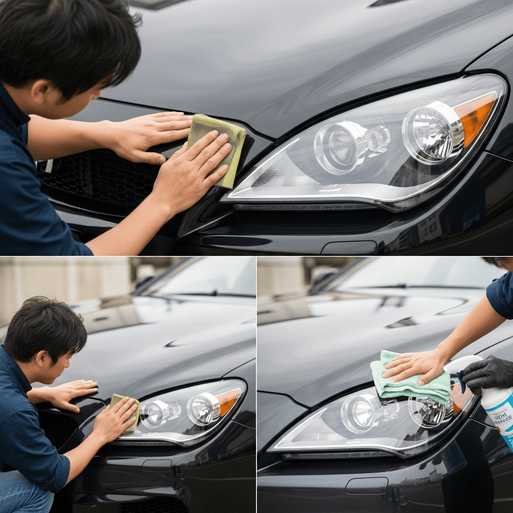 ヘッドライト黄ばみ除去+ボディ鉄粉除去で輝き復活!