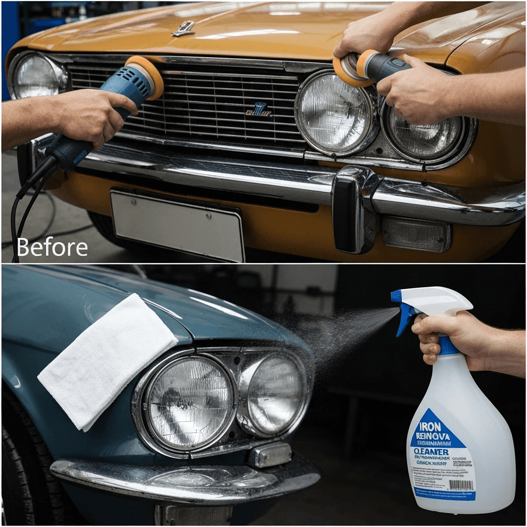 マークIIブリットはヘッドライトの黄ばみとボディの鉄粉が第一印象を損ねます。研磨+鉄粉除去クリーナー+ワックスで輝きを取り戻せば「程度良好」と判断され+4~7万円の効果。