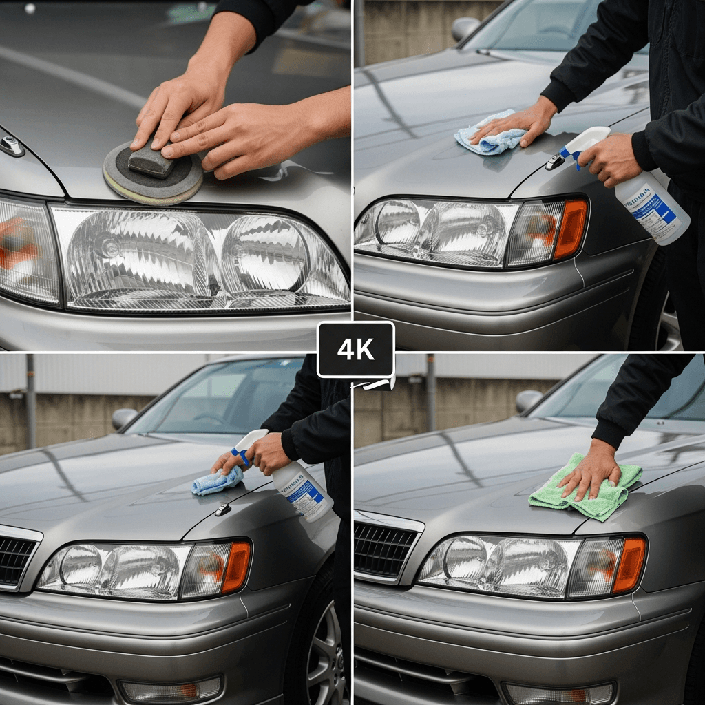 ヘッドライト黄ばみ除去+ボディ鉄粉除去で輝き復活!