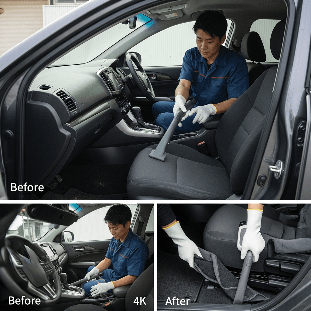 ミディアムクラスは第一印象が査定の8割を決めます。シート隙間のゴミ除去、マット洗浄、樹脂パーツ艶出しで新車級の清潔感に。特に臭いゼロなら「禁煙車」扱いで+5~8万円UP。