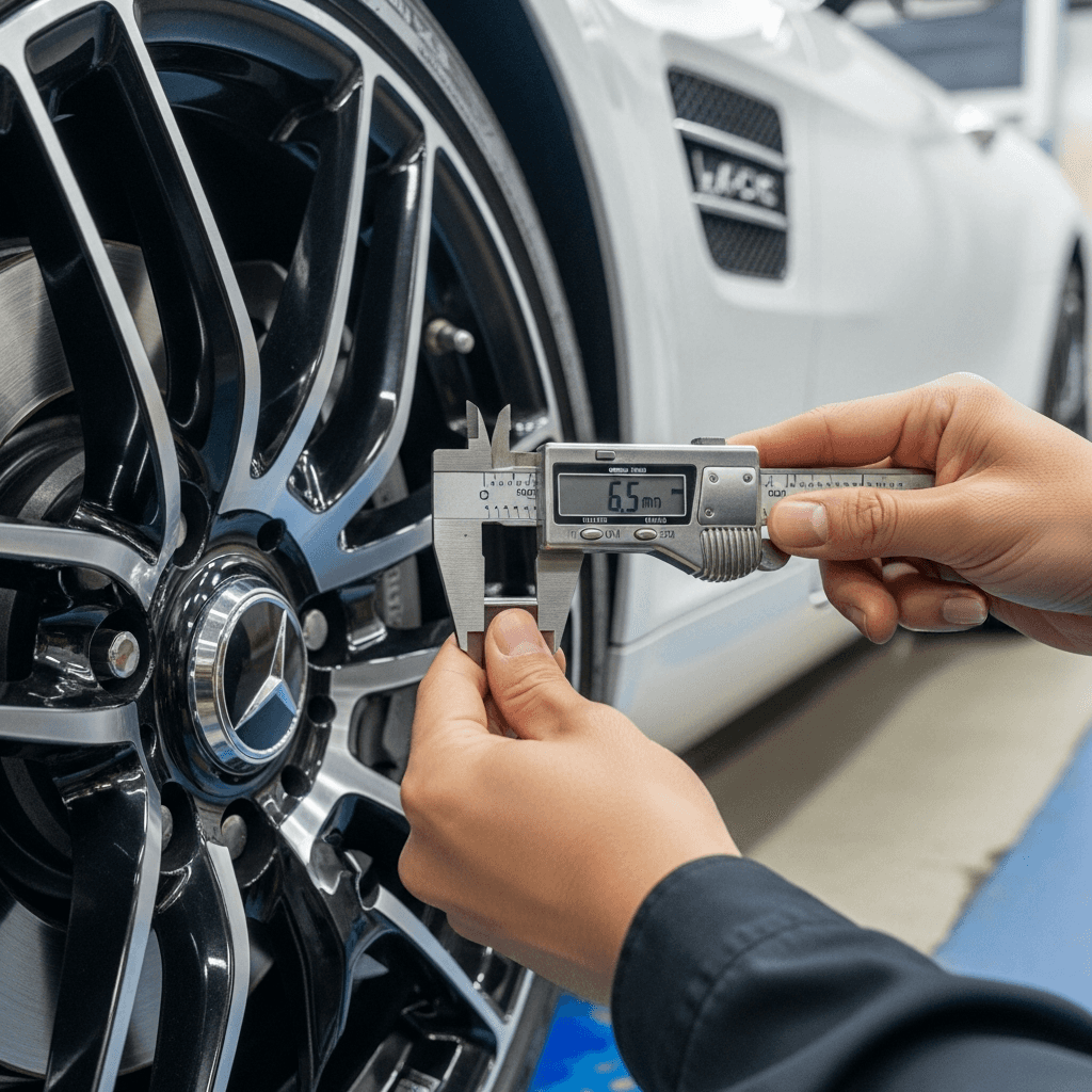 スポーツカーはブレーキとタイヤが査定の最重要項目。パッド残量6mm以上、タイヤ溝5mm以上を写真+ノギス測定値で証明すれば、「走行性能良好」の安心感を与え+8~12万円の評価UP。