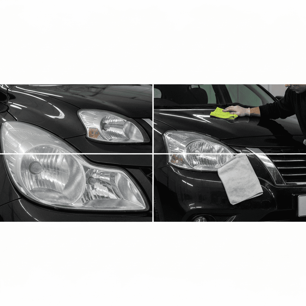 ヘッドライト黄ばみ除去+ボディ鉄粉除去で輝き復活!