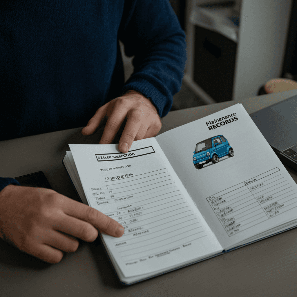 マイクロカーの整備記録簿に定期点検(12ヶ月・24ヶ月)の履歴が全て記載されていれば「管理の行き届いた車」と高評価。特にエンジンオイル交換履歴は重要で+6~9万円の効果。