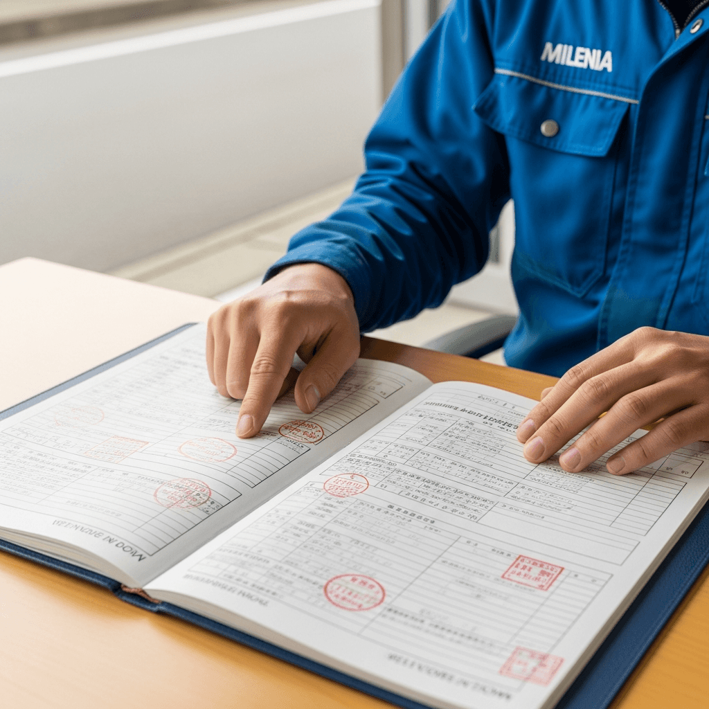 ミレーニアの整備記録簿に定期点検(12ヶ月・24ヶ月)の履歴が全て記載されていれば「管理の行き届いた車」と高評価。特にエンジンオイル交換履歴は重要で+6~9万円の効果。