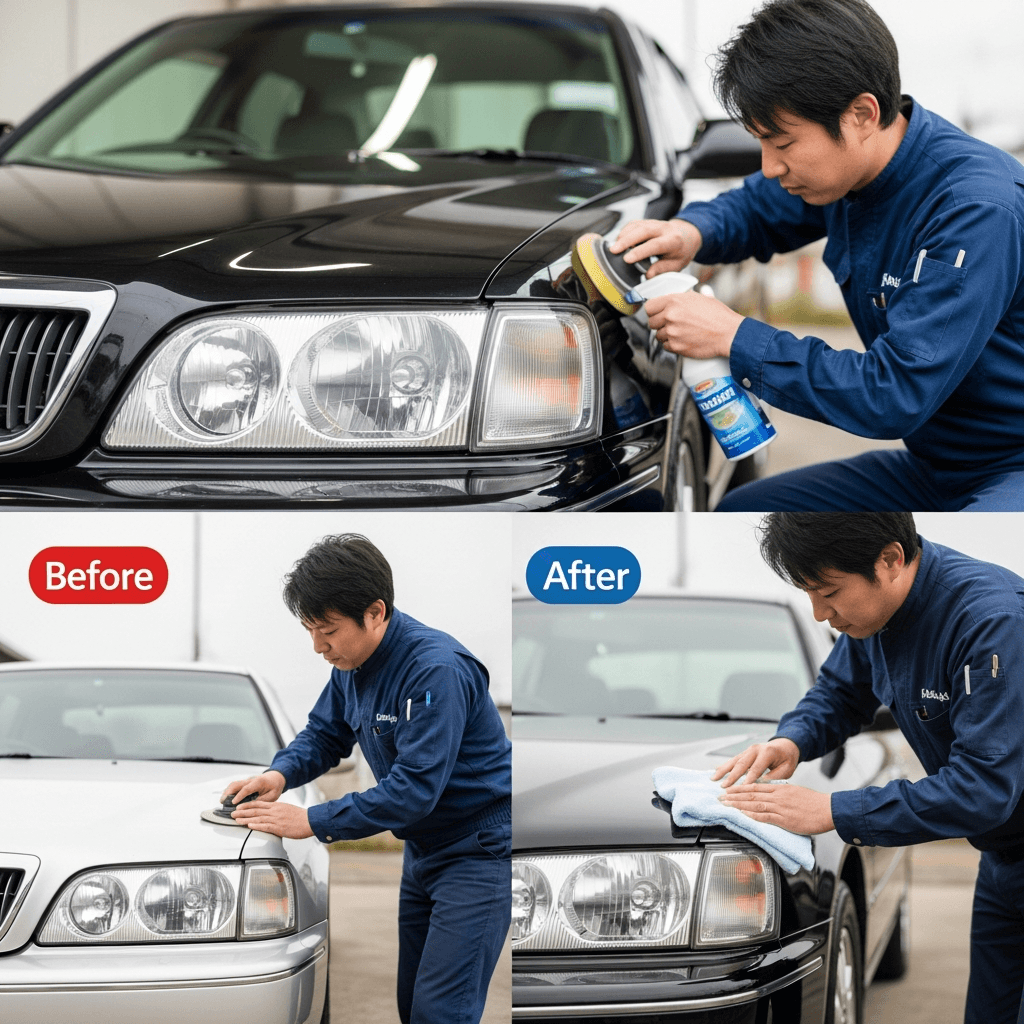 ヘッドライト黄ばみ除去+ボディ鉄粉除去で輝き復活!
