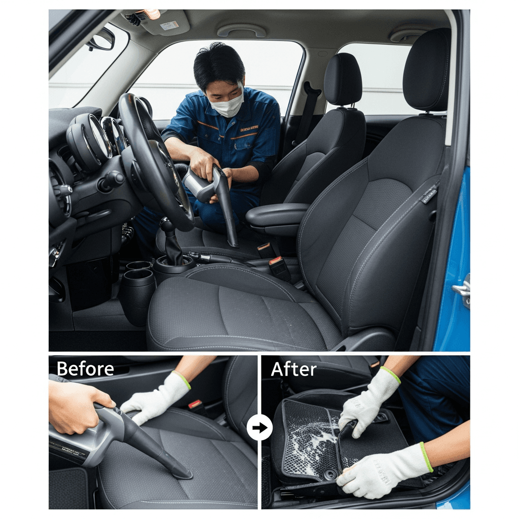 ミニは第一印象が査定の8割を決めます。シート隙間のゴミ除去、マット洗浄、樹脂パーツ艶出しで新車級の清潔感に。特に臭いゼロなら「禁煙車」扱いで+5~8万円UP。