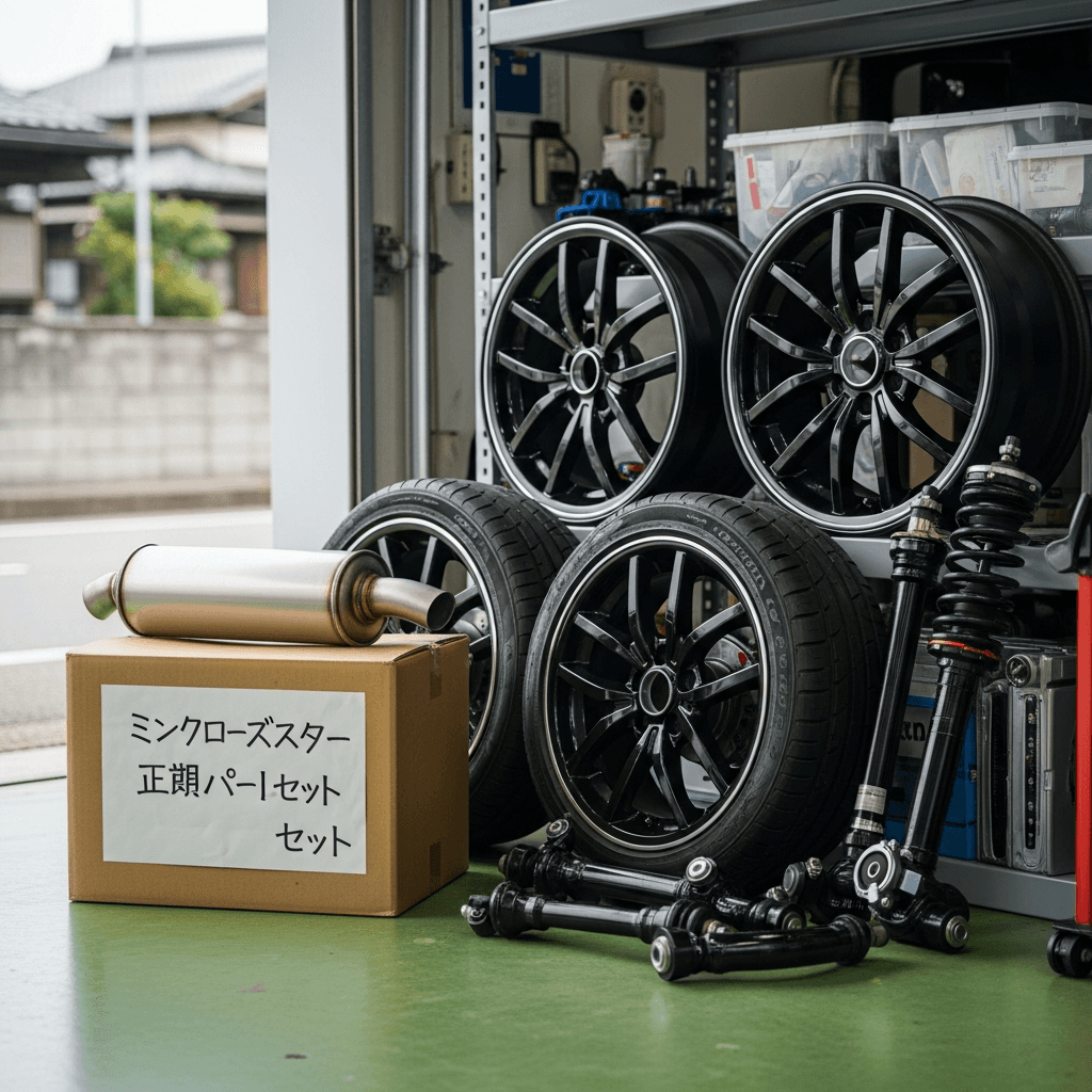 ミニロードスターはカスタム車両が多いですが、純正マフラー・サスペンション・ホイールが保管されていれば査定額は下がりません。「純正戻し可能」をアピールすることで+7~10万円の価値創出。
