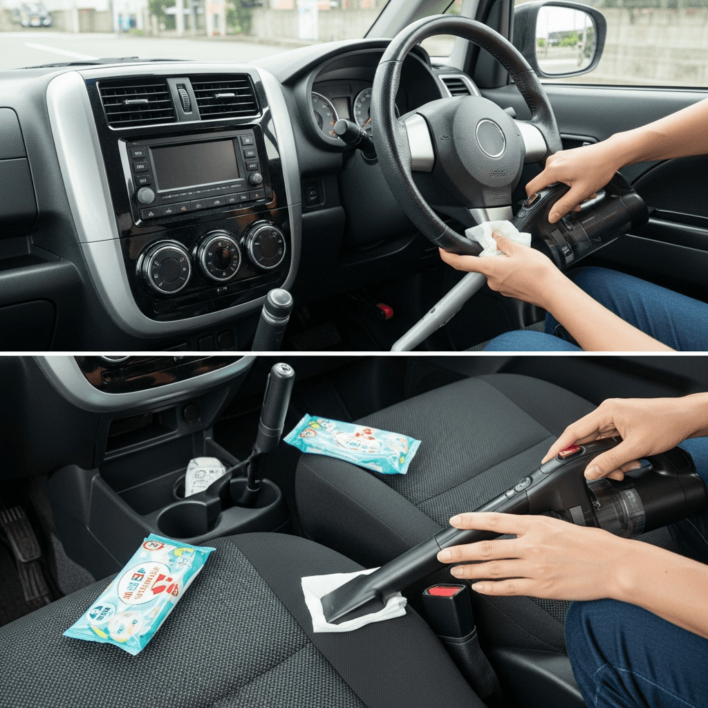 軽自動車は女性・高齢者の次オーナーが多く、清潔感が最重視されます。シート・フロアマット・ダッシュボードを徹底清掃し、消臭剤で無臭化すれば+4~7万円の効果。