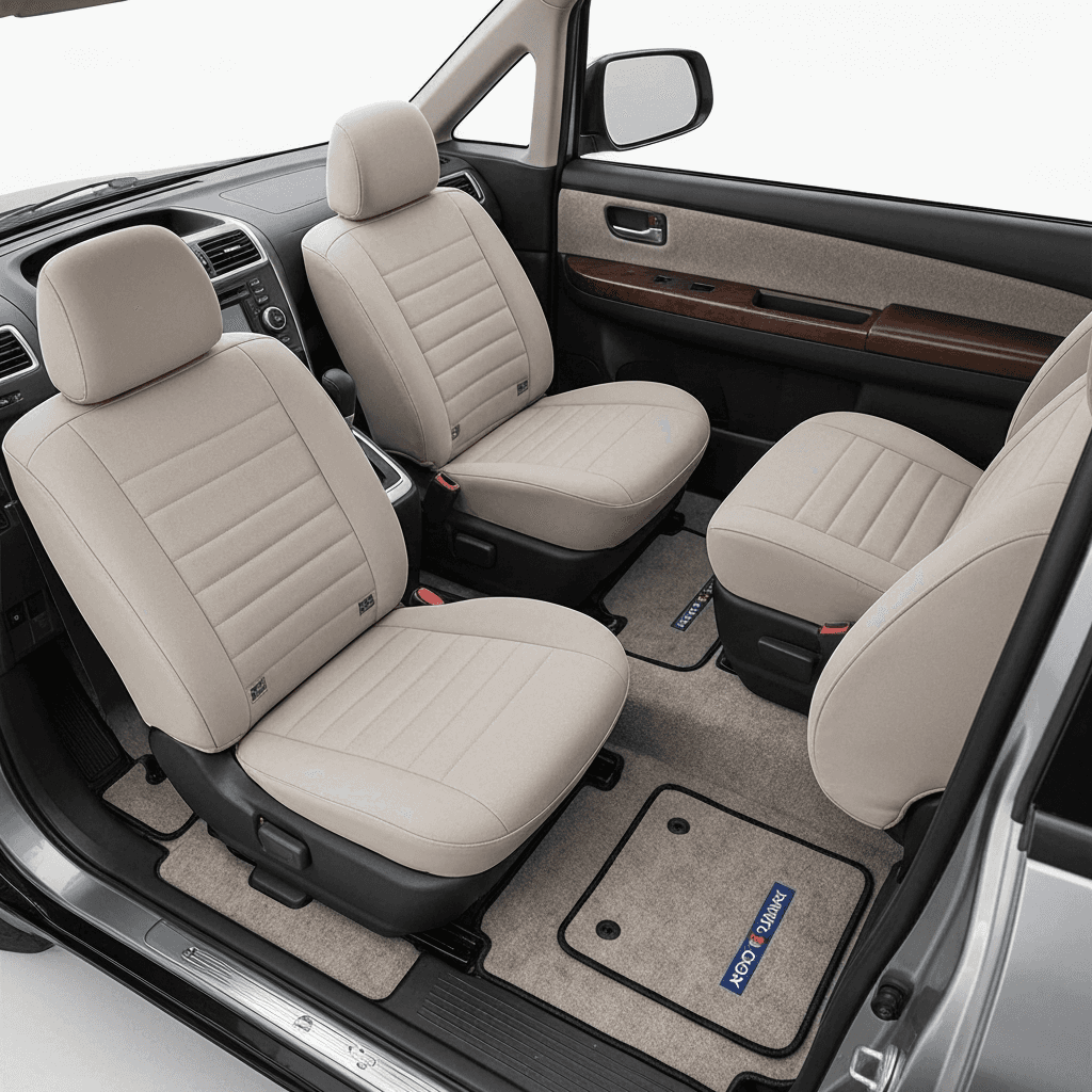 純正フロアマット全席分と純正シートカバーが揃っていれば「内装ダメージ最小限」の証明に。特にMPVは内装劣化が査定に直結するため+4~7万円の評価UP。