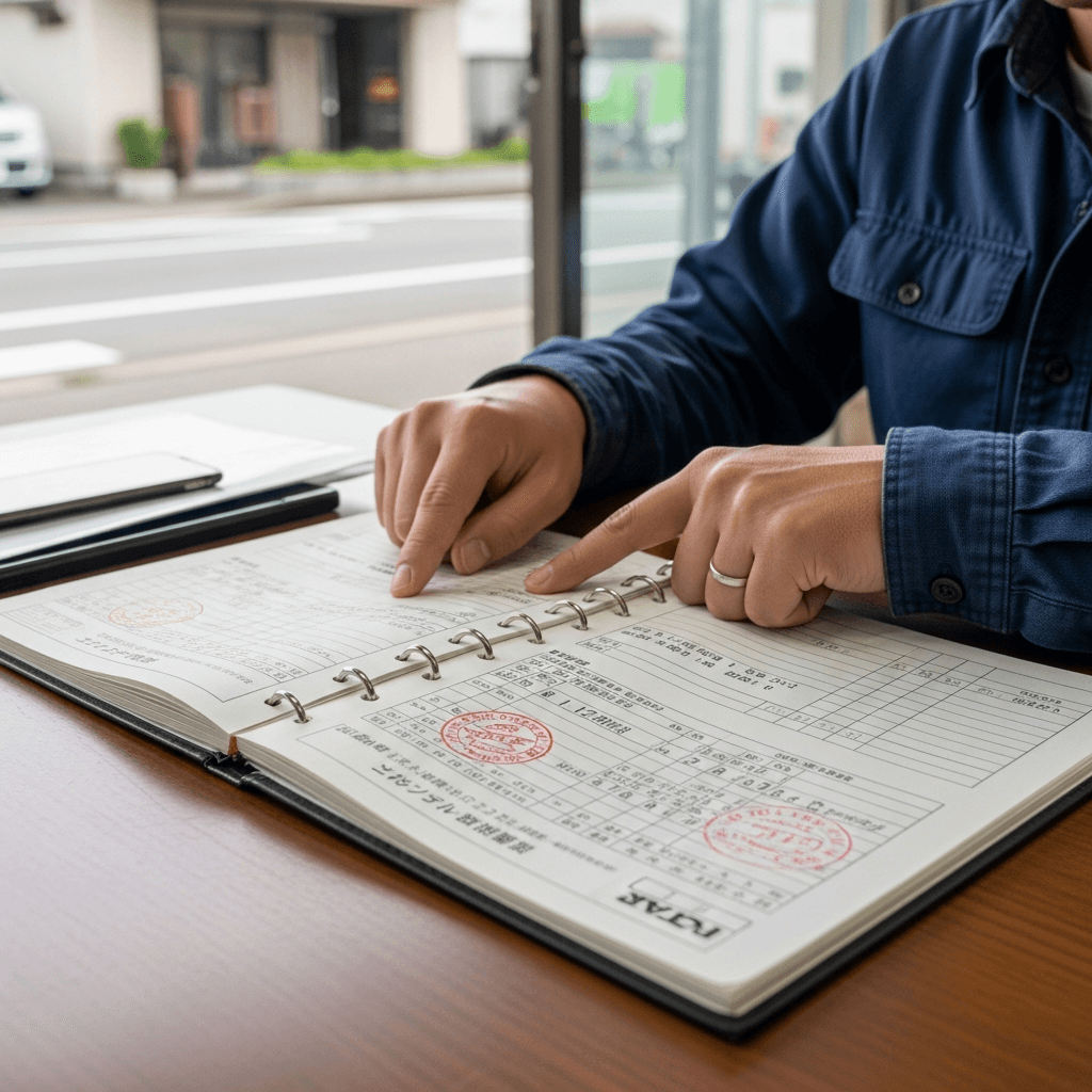 MRスパイダーの整備記録簿に定期点検(12ヶ月・24ヶ月)の履歴が全て記載されていれば「管理の行き届いた車」と高評価。特にエンジンオイル交換履歴は重要で+6~9万円の効果。