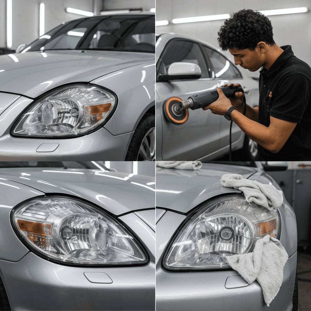 ヘッドライト黄ばみ除去+ボディ鉄粉除去で輝き復活!