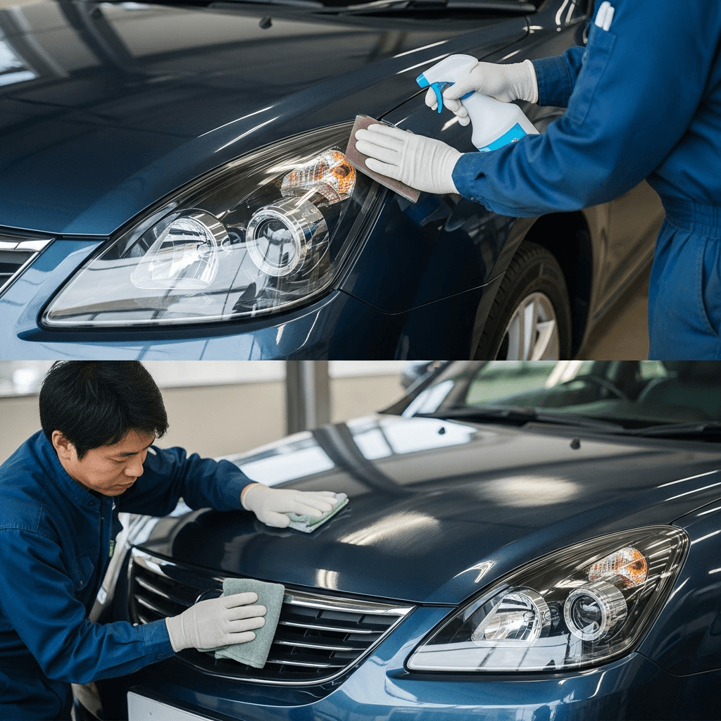 MS-8はヘッドライトの黄ばみとボディの鉄粉が第一印象を損ねます。研磨+鉄粉除去クリーナー+ワックスで輝きを取り戻せば「程度良好」と判断され+4~7万円の効果。