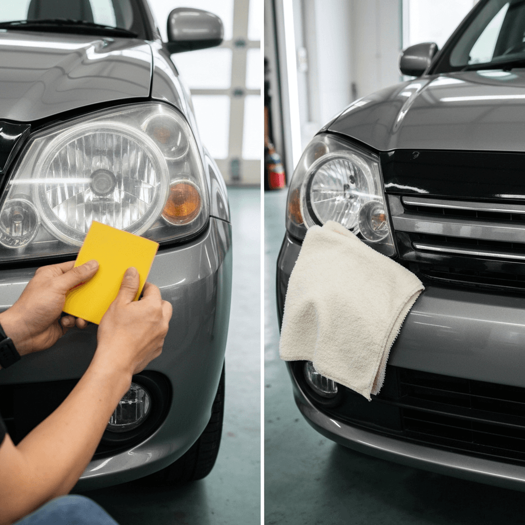 ヘッドライト黄ばみ除去+ボディ鉄粉除去で輝き復活!
