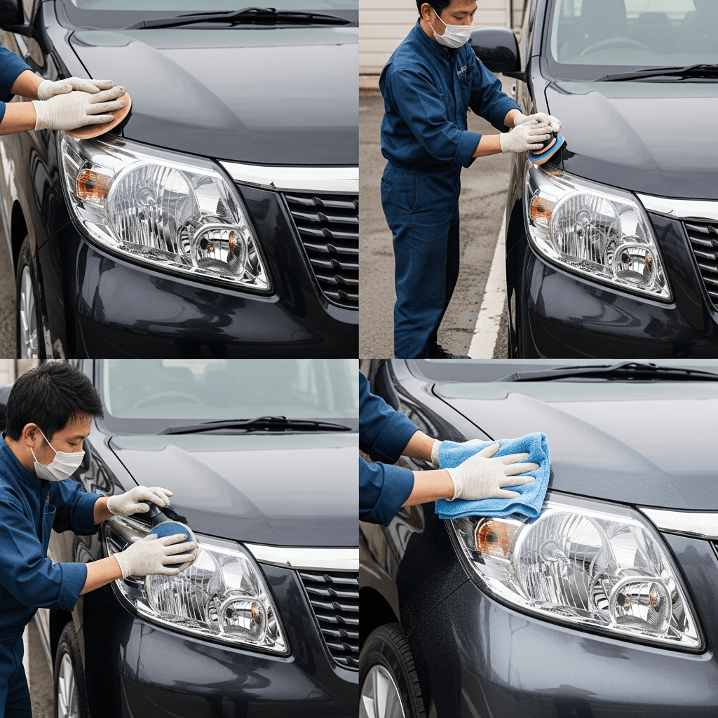 ヘッドライト黄ばみ除去+ボディ鉄粉除去で輝き復活!
