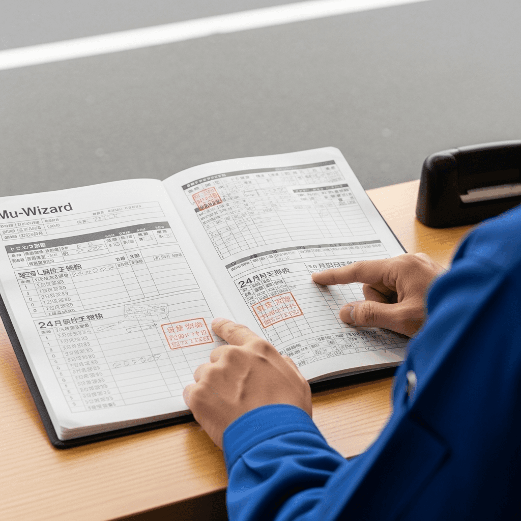 ミューウィザードの整備記録簿に定期点検(12ヶ月・24ヶ月)の履歴が全て記載されていれば「管理の行き届いた車」と高評価。特にエンジンオイル交換履歴は重要で+6~9万円の効果。