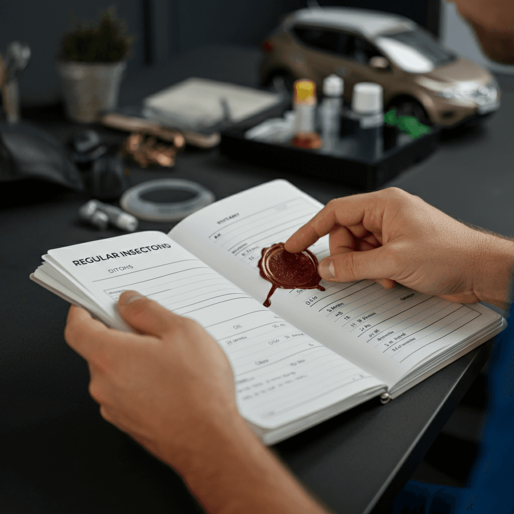 ムラーノの整備記録簿に定期点検(12ヶ月・24ヶ月)の履歴が全て記載されていれば「管理の行き届いた車」と高評価。特にエンジンオイル交換履歴は重要で+6~9万円の効果。