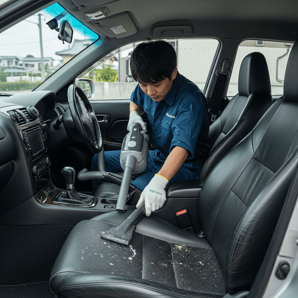 MX-6は第一印象が査定の8割を決めます。シート隙間のゴミ除去、マット洗浄、樹脂パーツ艶出しで新車級の清潔感に。特に臭いゼロなら「禁煙車」扱いで+5~8万円UP。