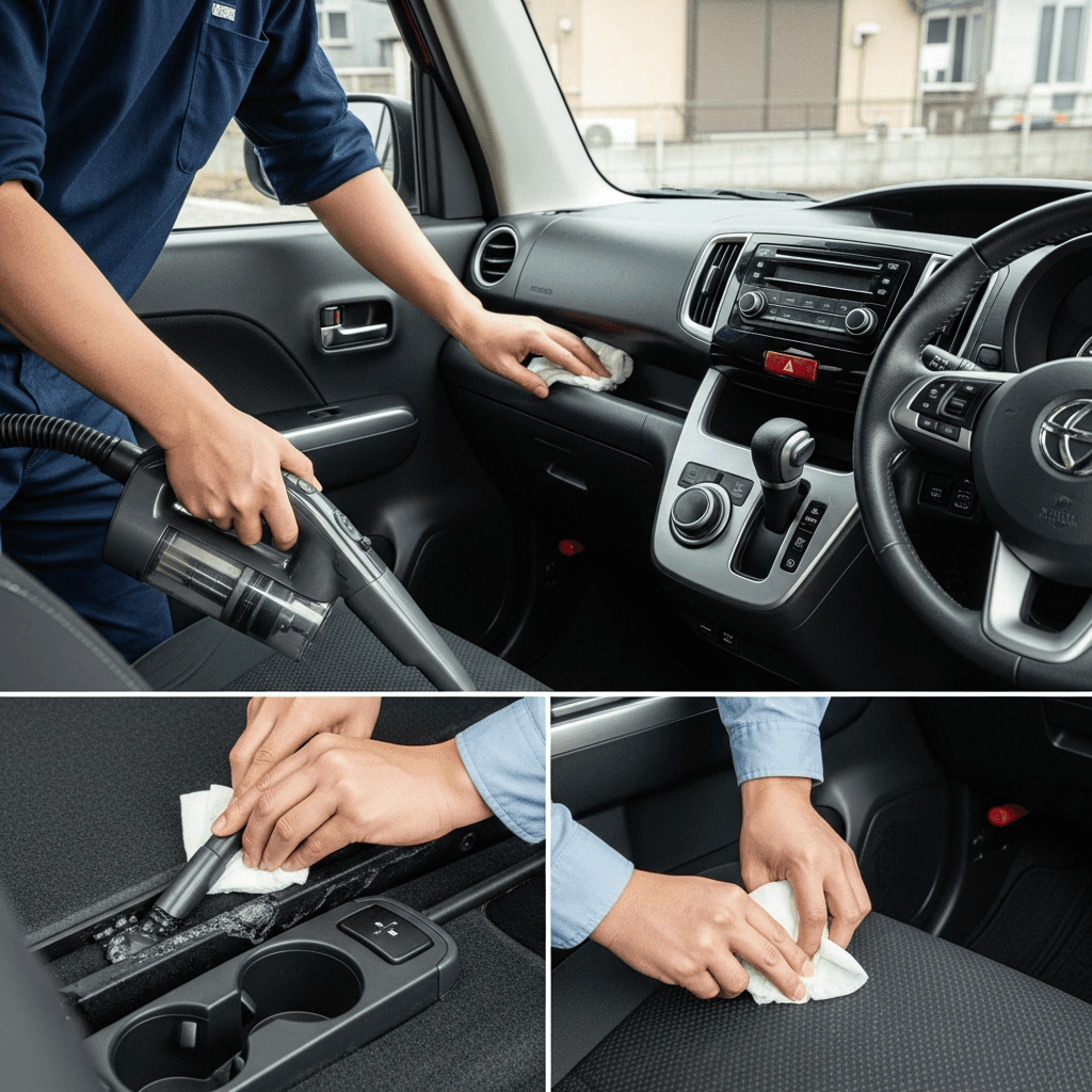 軽自動車は女性・高齢者の次オーナーが多く、清潔感が最重視されます。シート・フロアマット・ダッシュボードを徹底清掃し、消臭剤で無臭化すれば+4~7万円の効果。