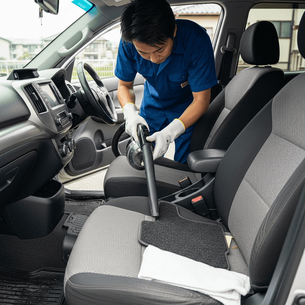 ネイキッドは第一印象が査定の8割を決めます。シート隙間のゴミ除去、マット洗浄、樹脂パーツ艶出しで新車級の清潔感に。特に臭いゼロなら「禁煙車」扱いで+5~8万円UP。
