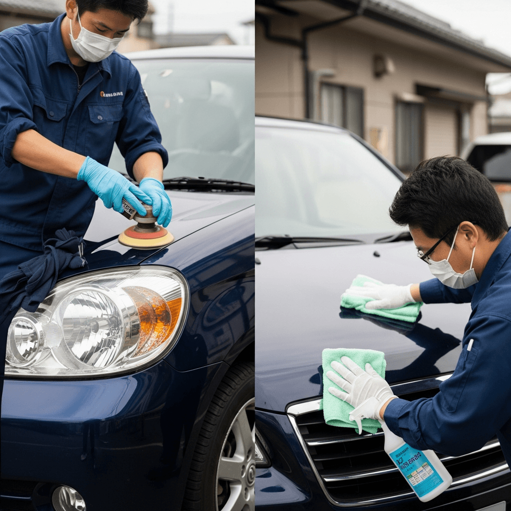 ネイキッドはヘッドライトの黄ばみとボディの鉄粉が第一印象を損ねます。研磨+鉄粉除去クリーナー+ワックスで輝きを取り戻せば「程度良好」と判断され+4~7万円の効果。