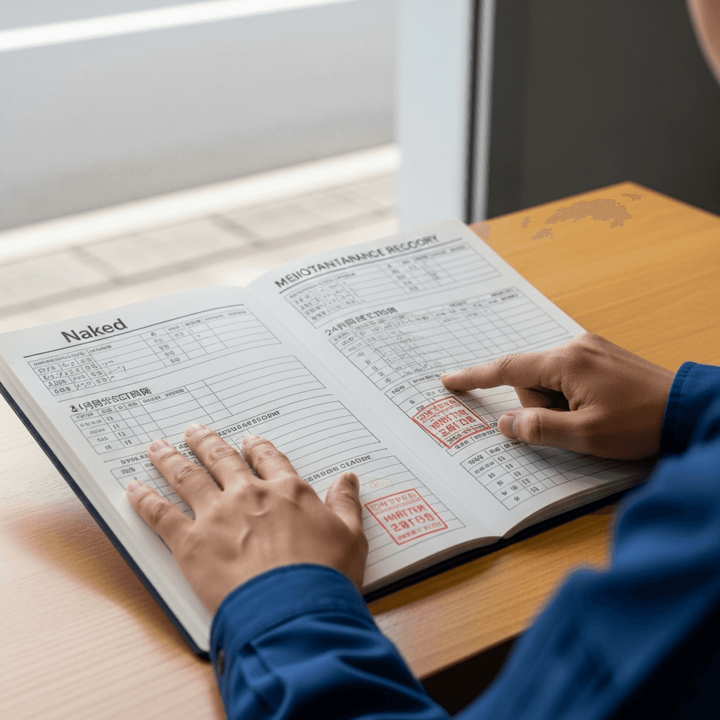 ネイキッドの整備記録簿に定期点検(12ヶ月・24ヶ月)の履歴が全て記載されていれば「管理の行き届いた車」と高評価。特にエンジンオイル交換履歴は重要で+6~9万円の効果。