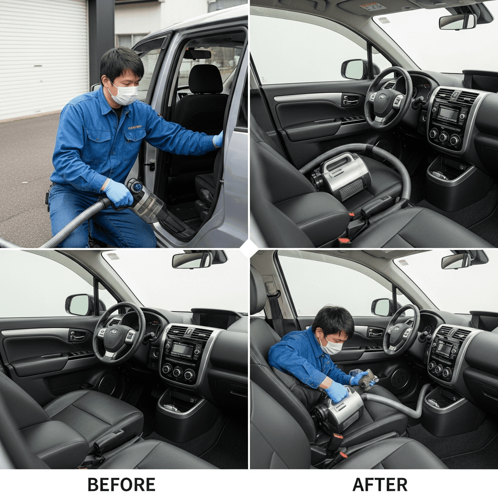 ヌエラ6-02は第一印象が査定の8割を決めます。シート隙間のゴミ除去、マット洗浄、樹脂パーツ艶出しで新車級の清潔感に。特に臭いゼロなら「禁煙車」扱いで+5~8万円UP。