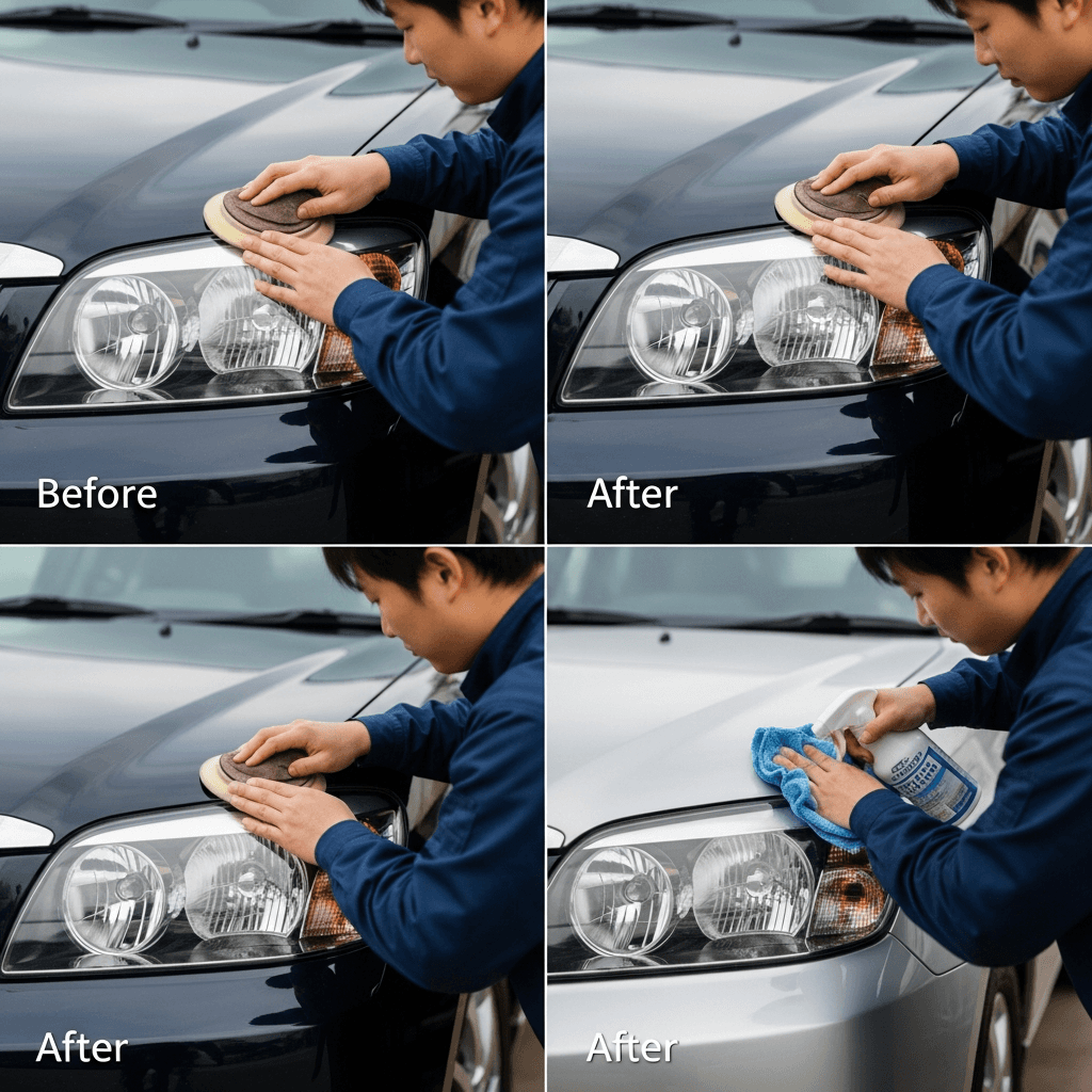 ヘッドライト黄ばみ除去+ボディ鉄粉除去で輝き復活!