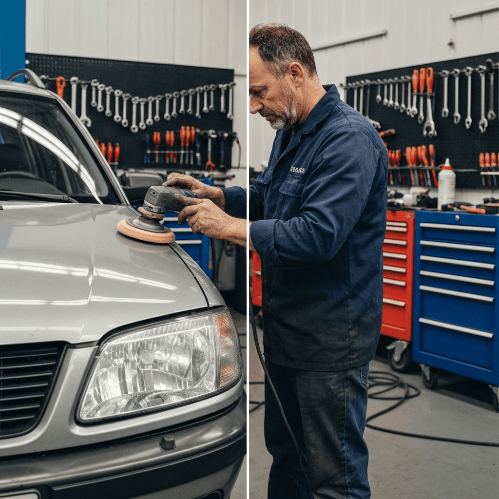 ヌエラ6-02ワゴンはヘッドライトの黄ばみとボディの鉄粉が第一印象を損ねます。研磨+鉄粉除去クリーナー+ワックスで輝きを取り戻せば「程度良好」と判断され+4~7万円の効果。