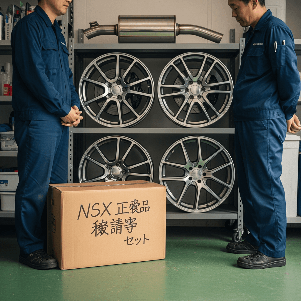 NSXはカスタム車両が多いですが、純正マフラー・サスペンション・ホイールが保管されていれば査定額は下がりません。「純正戻し可能」をアピールすることで+7~10万円の価値創出。