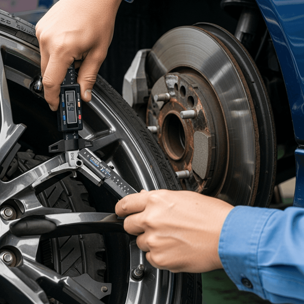 スポーツカーはブレーキとタイヤが査定の最重要項目。パッド残量6mm以上、タイヤ溝5mm以上を写真+ノギス測定値で証明すれば、「走行性能良好」の安心感を与え+8~12万円の評価UP。