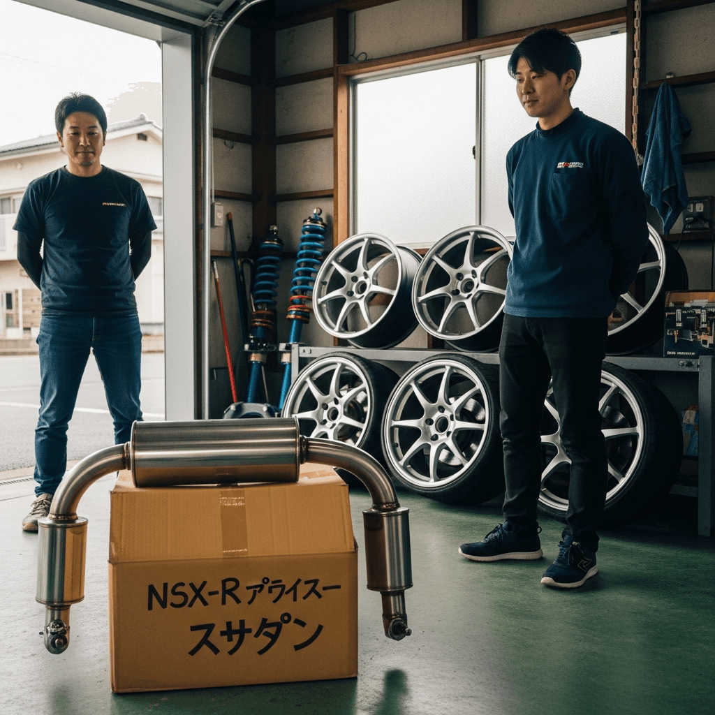 NSX-Rはカスタム車両が多いですが、純正マフラー・サスペンション・ホイールが保管されていれば査定額は下がりません。「純正戻し可能」をアピールすることで+7~10万円の価値創出。