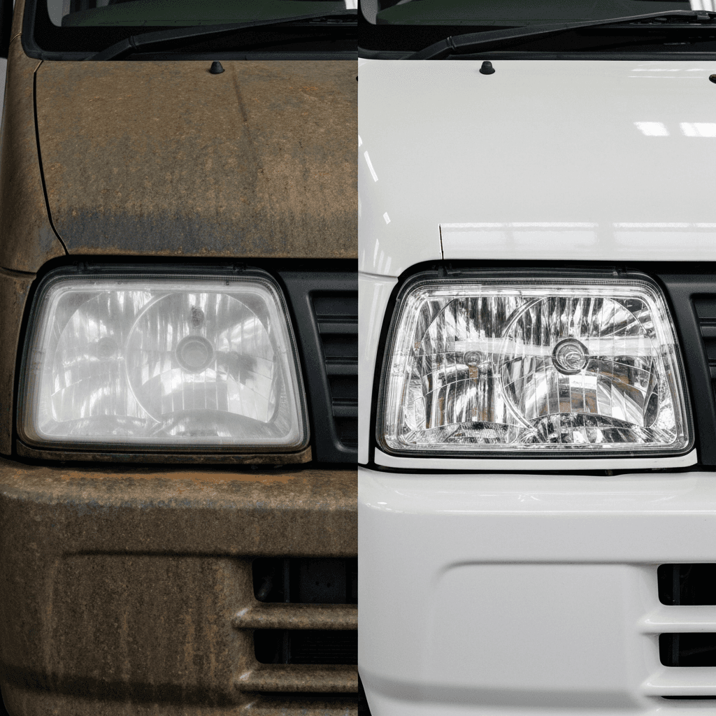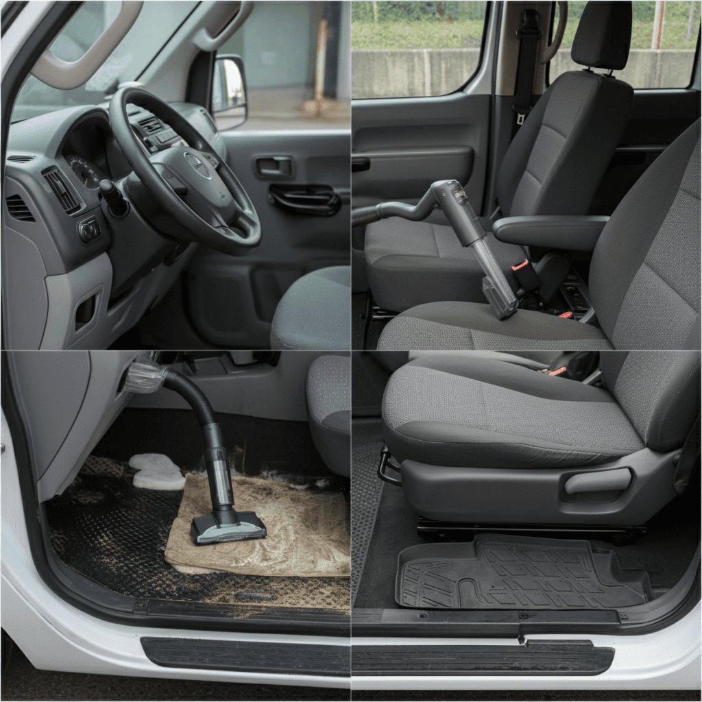 ファミリー利用が多い軽自動車。シート汚れ・臭いが減点要因。クリーニングで+3万円効果。