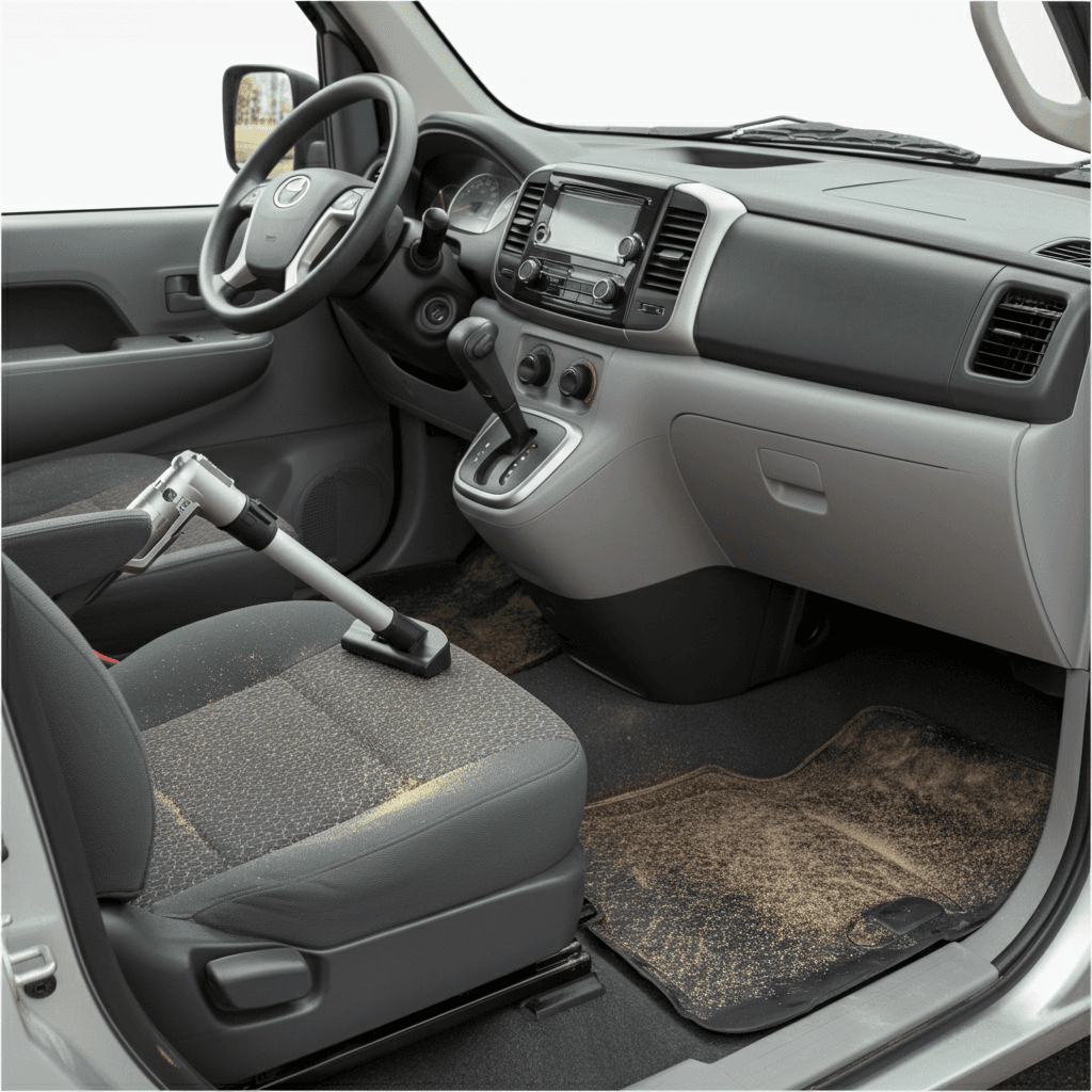 NV100クリッパーリオは第一印象が査定の8割を決めます。シート隙間のゴミ除去、マット洗浄、樹脂パーツ艶出しで新車級の清潔感に。特に臭いゼロなら「禁煙車」扱いで+5~8万円UP。