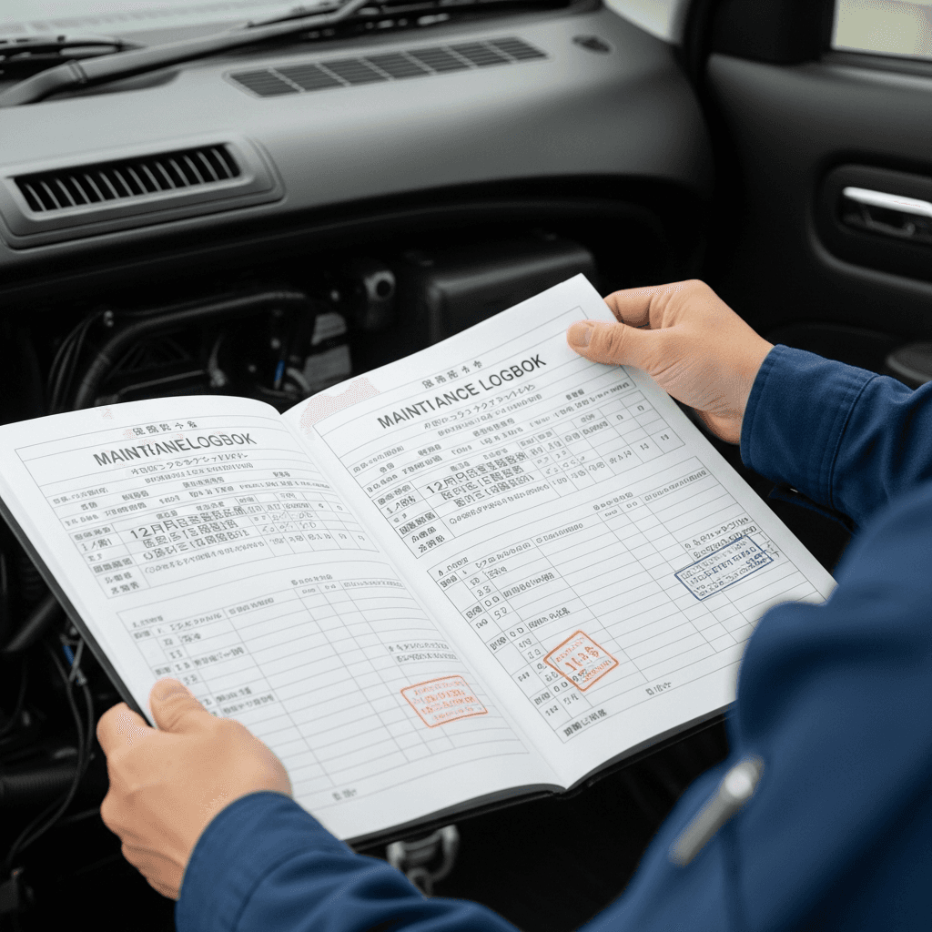 商用車は走行距離が多くても整備履歴が完璧なら高評価。12ヶ月点検を欠かさず実施した記録簿があれば「業務使用でも管理完璧」と評価され+6~10万円の効果。