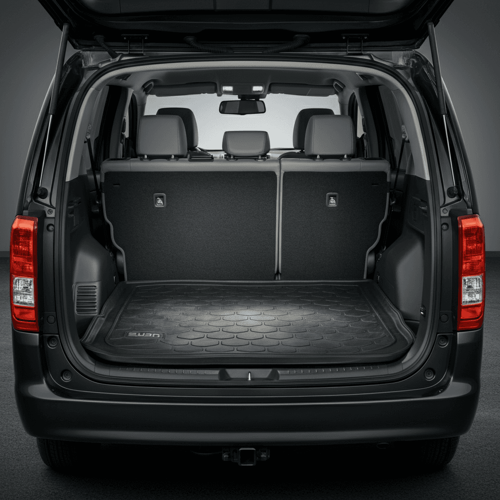 NV350キャラバンワゴンは商用利用が前提。荷室に保護ゴムマット+仕切り板が装備されていれば「荷室ダメージ最小限」の証明に。実用性重視の商用車で+5~8万円の評価UP。