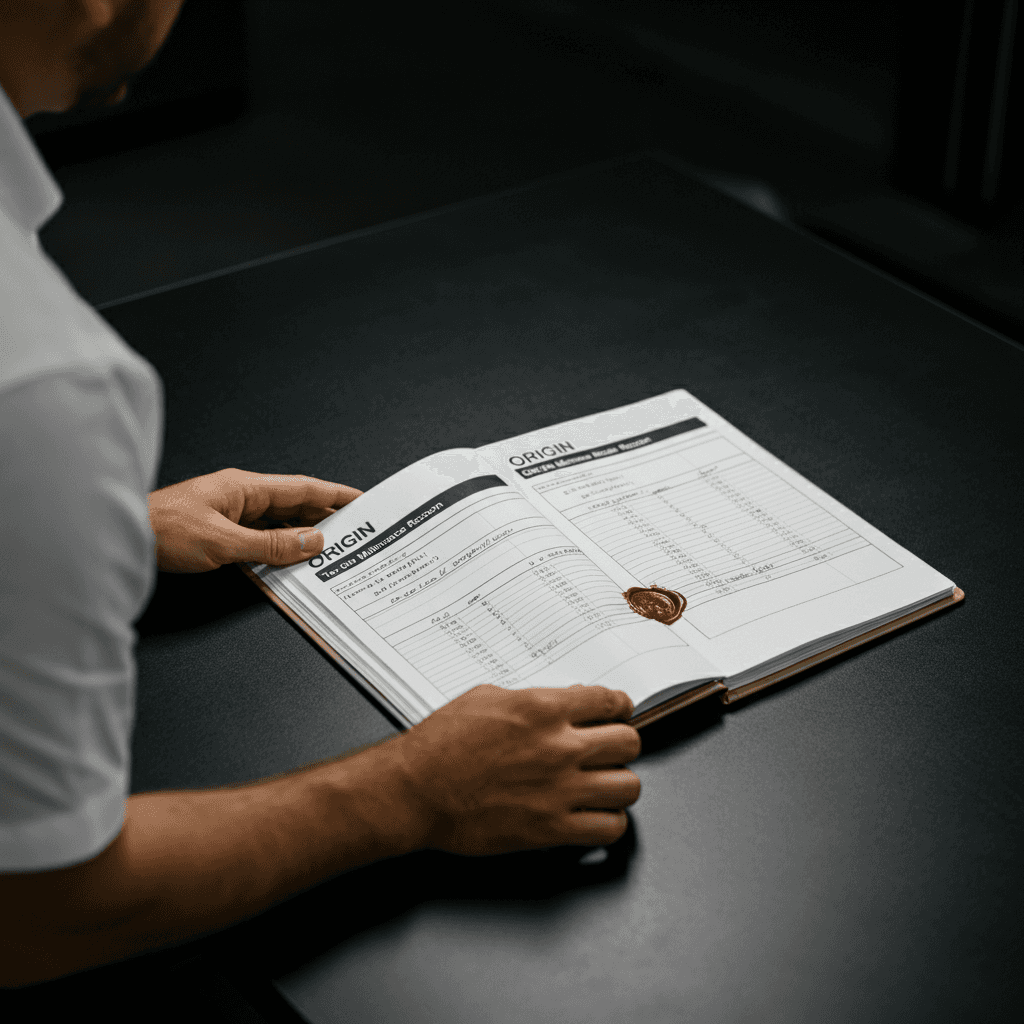 オリジンの整備記録簿に定期点検(12ヶ月・24ヶ月)の履歴が全て記載されていれば「管理の行き届いた車」と高評価。特にエンジンオイル交換履歴は重要で+6~9万円の効果。