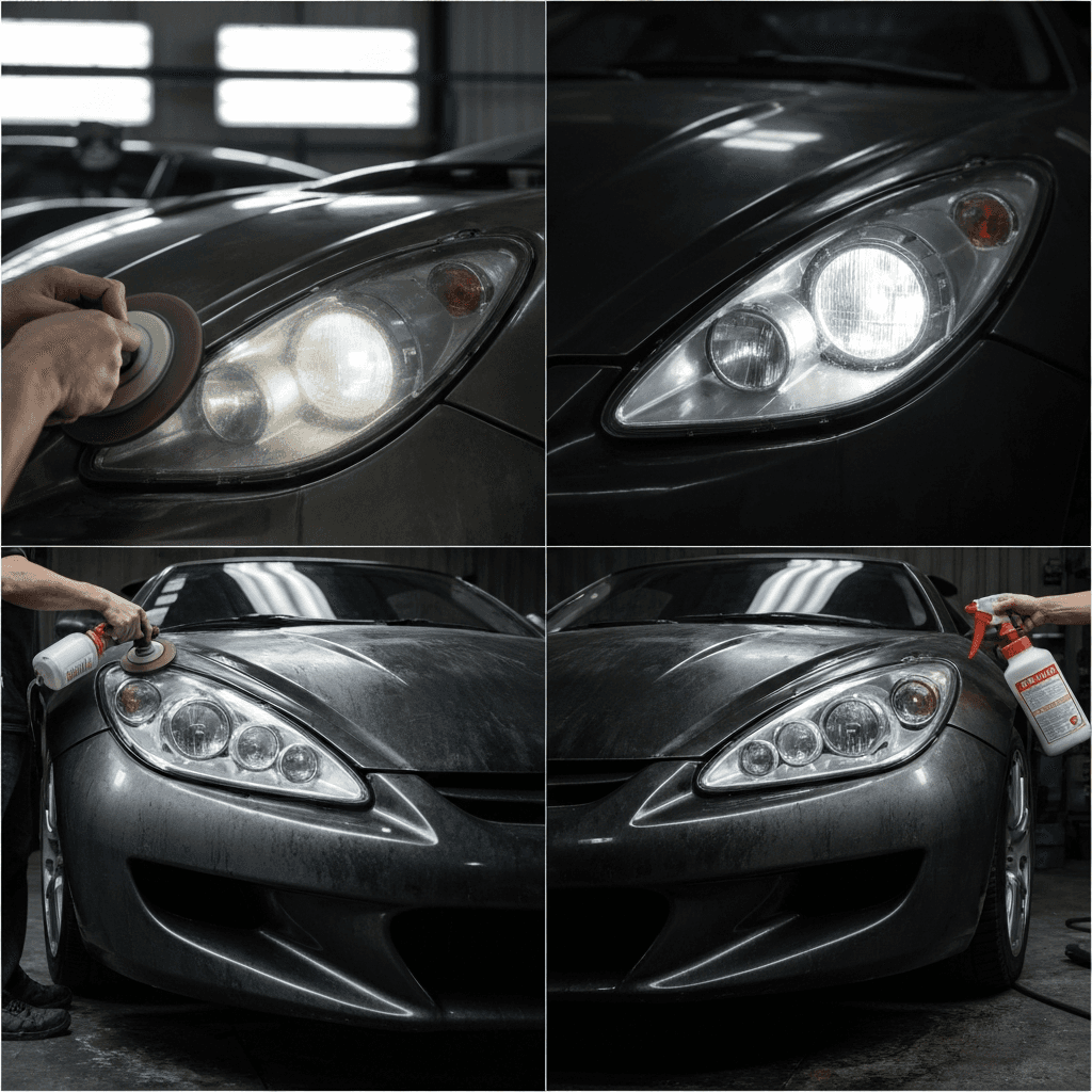ヘッドライト黄ばみ除去+ボディ鉄粉除去で輝き復活!