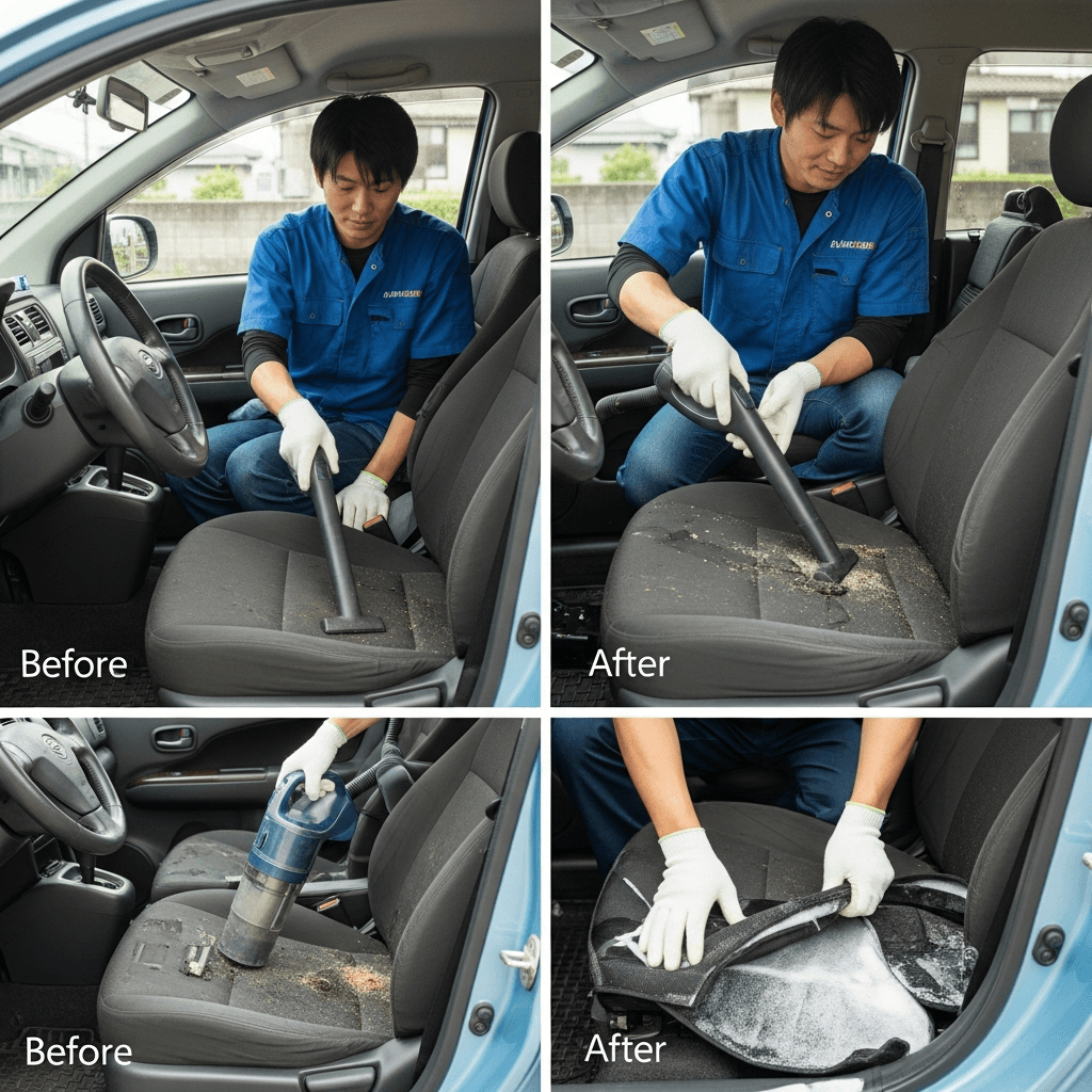 PAネロハッチバックは第一印象が査定の8割を決めます。シート隙間のゴミ除去、マット洗浄、樹脂パーツ艶出しで新車級の清潔感に。特に臭いゼロなら「禁煙車」扱いで+5~8万円UP。