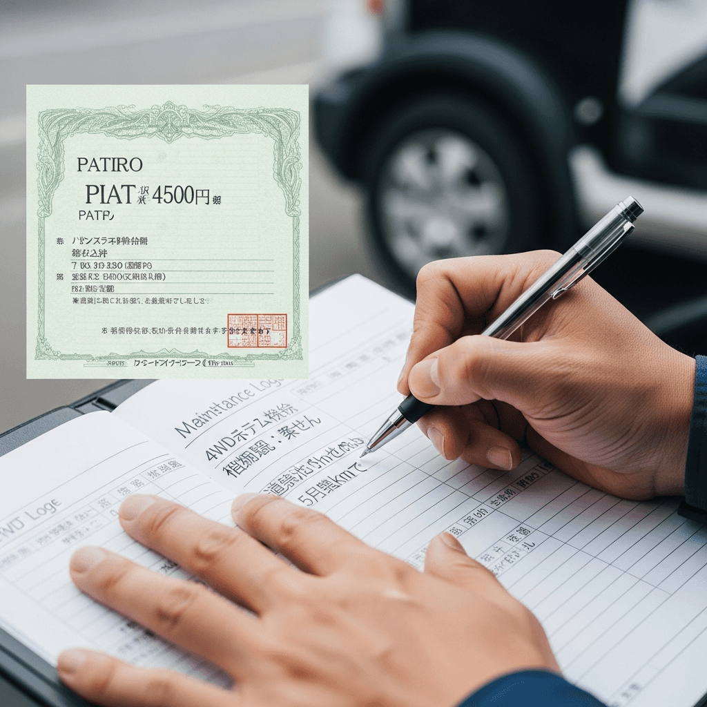 パジェロのようなSUVは4WD性能が価値の源泉。4WDシステム点検とデフオイル交換記録があれば「オフロード性能維持」と高評価され、+8~12万円の査定UPが期待できます。