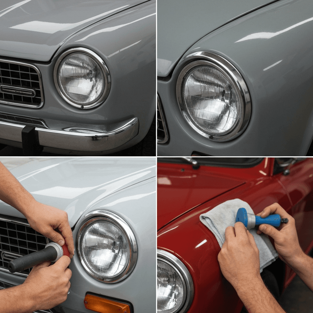 ピノはヘッドライトの黄ばみとボディの鉄粉が第一印象を損ねます。研磨+鉄粉除去クリーナー+ワックスで輝きを取り戻せば「程度良好」と判断され+4~7万円の効果。