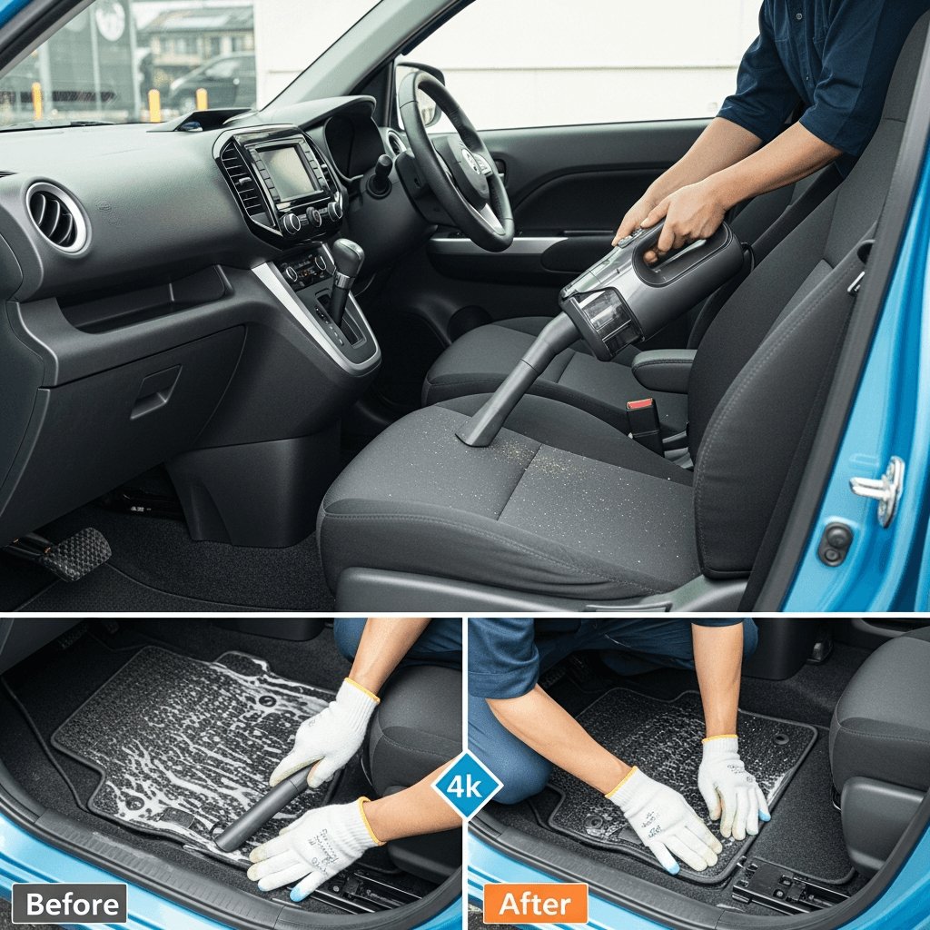 ピクシスジョイは第一印象が査定の8割を決めます。シート隙間のゴミ除去、マット洗浄、樹脂パーツ艶出しで新車級の清潔感に。特に臭いゼロなら「禁煙車」扱いで+5~8万円UP。