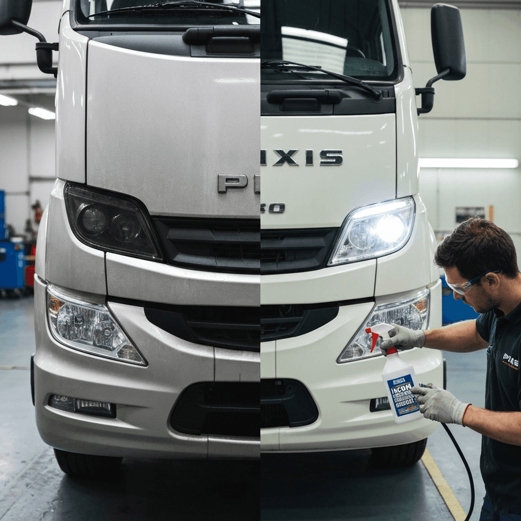 ピクシストラックはヘッドライトの黄ばみとボディの鉄粉が第一印象を損ねます。研磨+鉄粉除去クリーナー+ワックスで輝きを取り戻せば「程度良好」と判断され+4~7万円の効果。